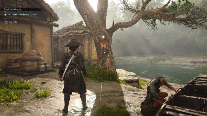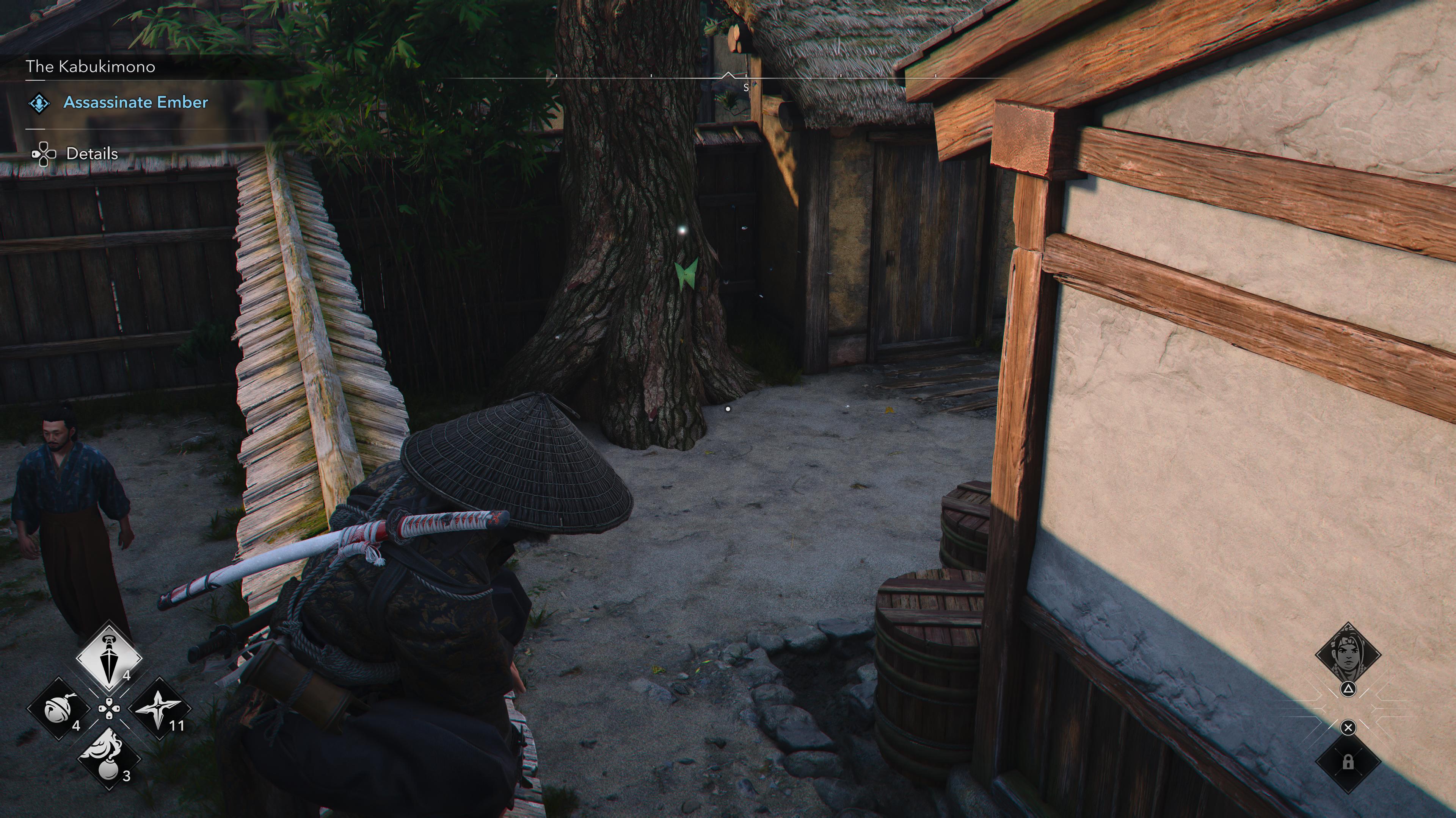 Чтобы найти её, спуститесь в Рыбацкий квартал и удерживайте L2, чтобы выделить синий круг, обозначающий её местоположение. Она находится в юго-западном углу острова, и, убив её, вы получите танто «Чернила».