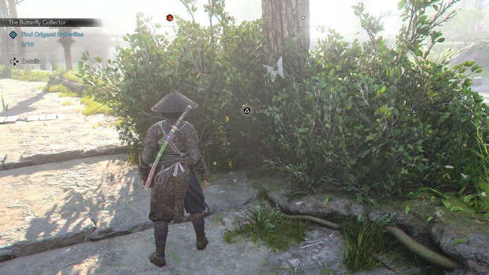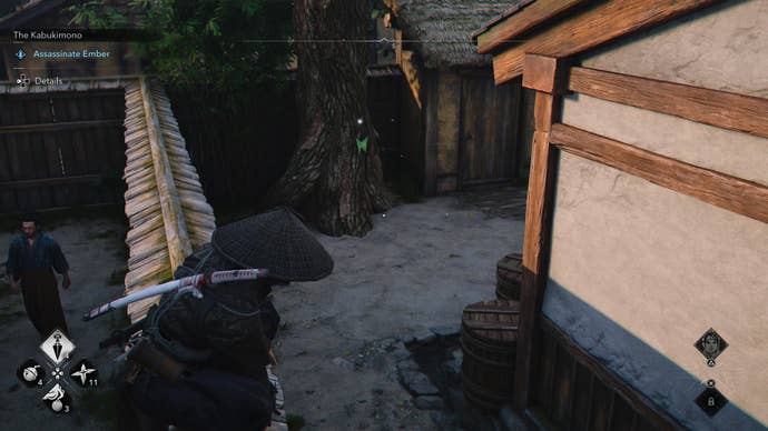 Найдя первую, вы обнаружите ещё одну белую бабочку рядом с сгоревшими зданиями к северо-западу от храма Осаки, рядом с руинами Кодзё: