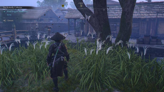 Когда Наоэ бродит по улицам Осаки в Assassin’s Creed: Shadows, она находит ярких бабочек-оригами, спрятавшихся между деревьями и кустами по всему городу.