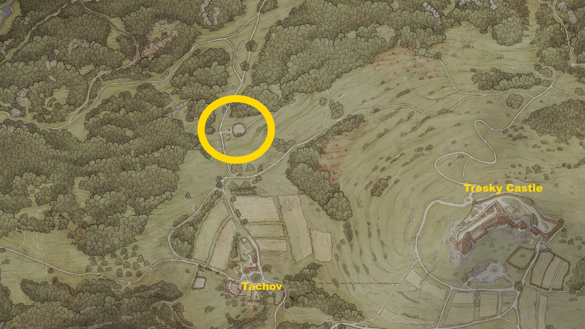 Первый шаг квеста открывается, как только вы вернёте контроль над Генри после того, как освободите его из кандалов. Он появляется вместе с двумя другими основными сюжетными квестами и отмечен зелёной буквой «А» на вашей карте. Первая часть квеста буквально заключается в том, что вы просто отправляетесь в это место. Он находится к западу от дома Божены, и вы можете без особых проблем пройти по дороге из Тросковица в Желехов, а затем в лес, пока не дойдёте до маркера задания.