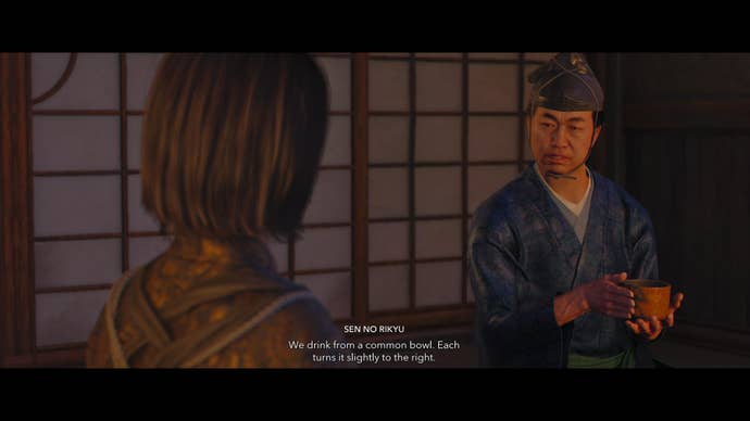 Поговорите с ними, и вы узнаете о знаменитом чайном мастере Сэн-но Риккю, который, к счастью, появляется как раз в эту минуту.