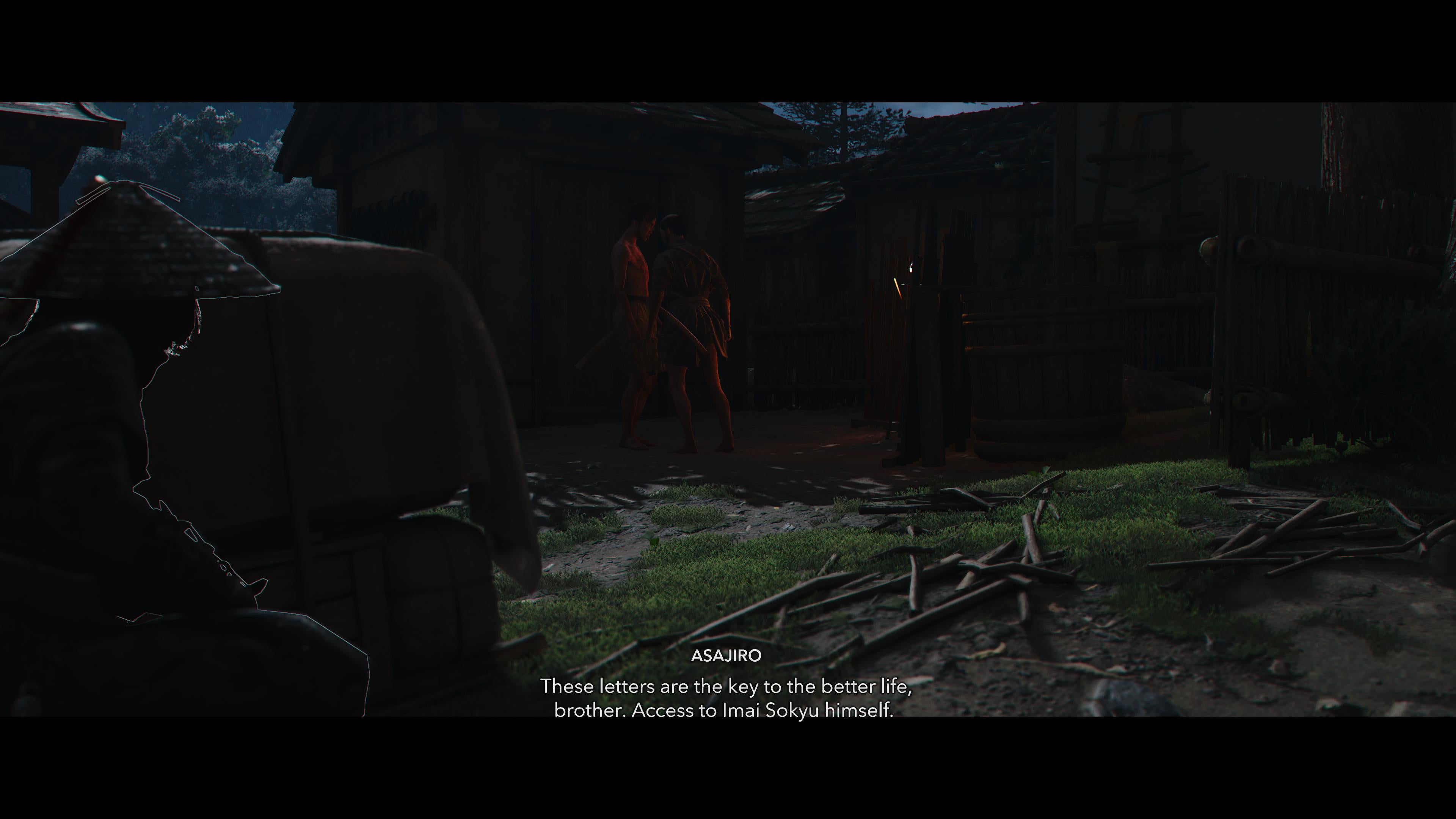 Затем поговорите с леди Сатоко и расскажите ей о своём деле с Имаи. Она — пугающий персонаж и говорит, что предпочла бы охотиться на бандитов. Она возмущается, что кто-то может воровать в трудные времена, а затем извиняется.