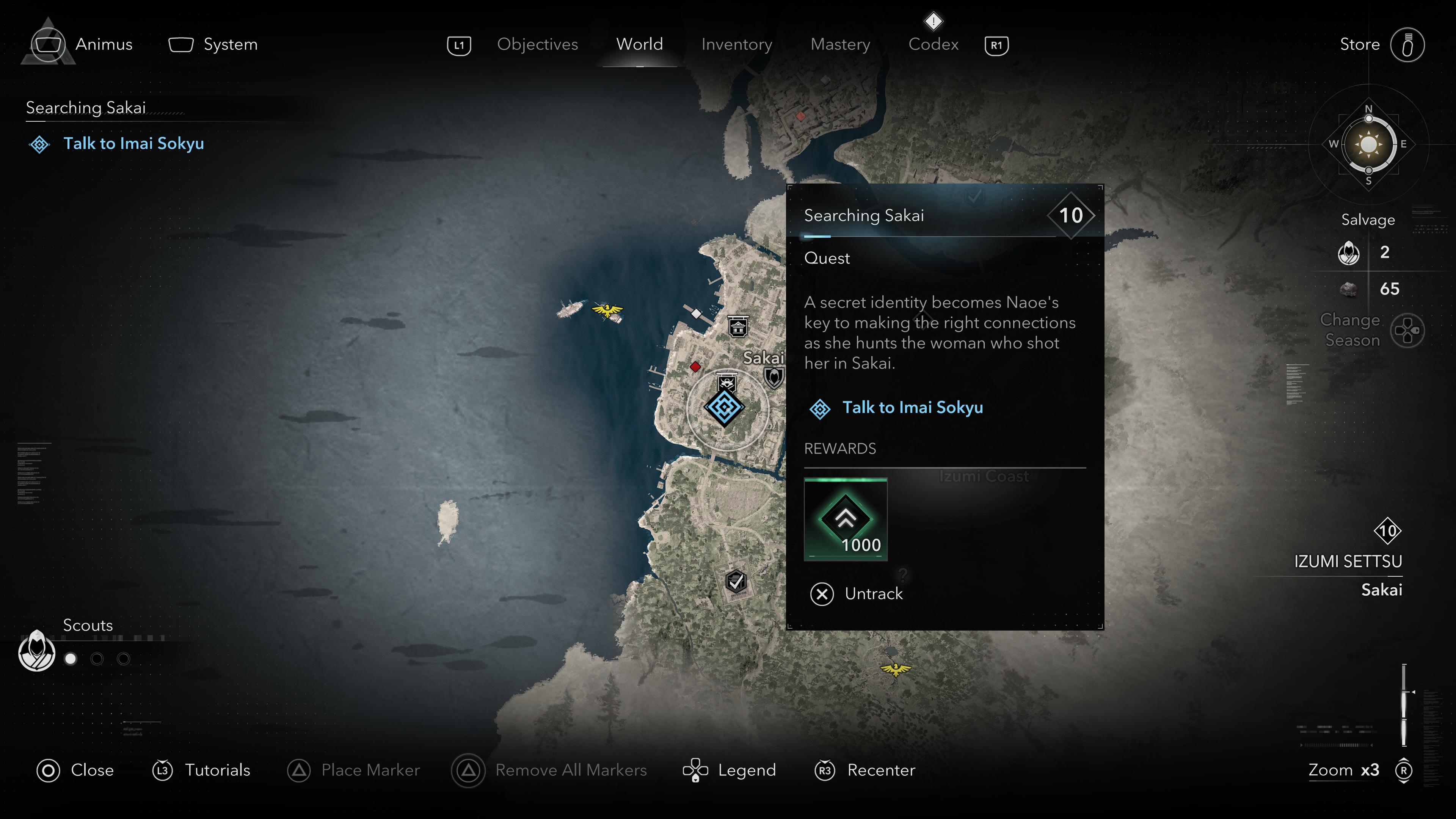 Сначала отправляйтесь в портовый город Сакаи и исследуйте квестовые маркеры в центре города.