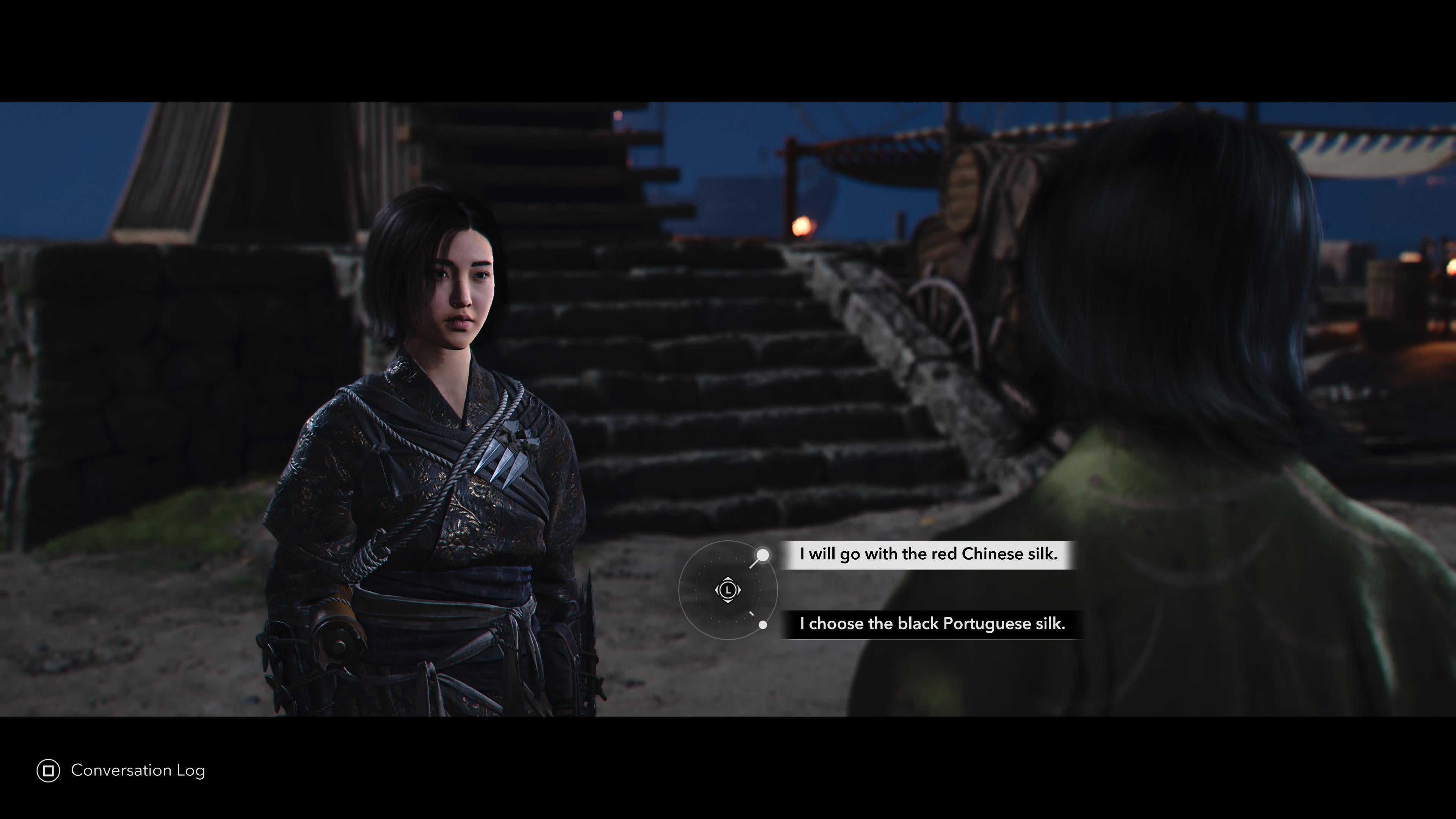 Выберите чёрный шёлковый костюм Косоде, чтобы не только создать впечатление, что вы общаетесь с иностранными торговцами, но и получить важную подсказку в дальнейшем квесте благодаря его изящной золотой отделке.