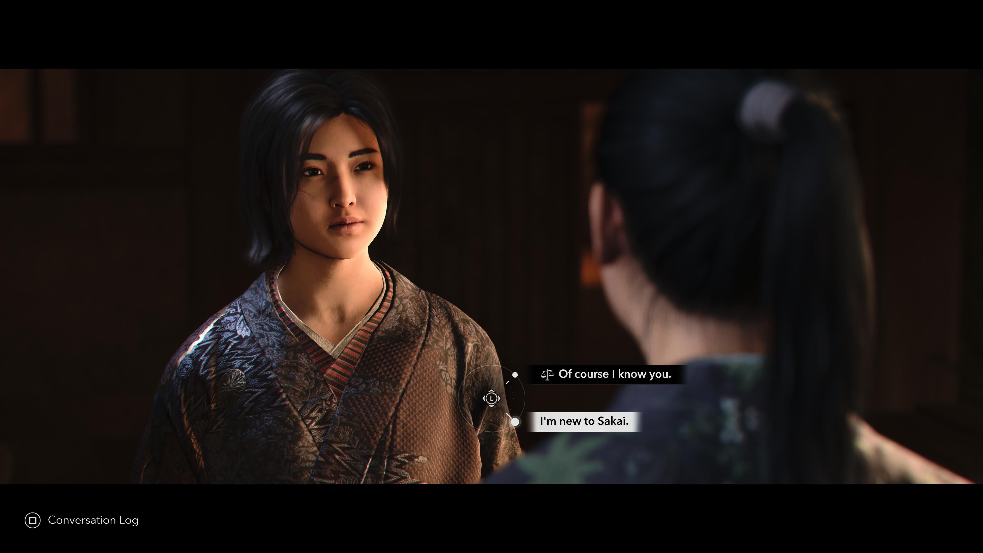 Затем пройдите в юго-западный угол Сакаи и удерживайте L2, чтобы выделить синюю точку — торговый дом Имаи. Поговорите с сыном Сокуном, и поначалу он будет сомневаться в вашей правомерности.